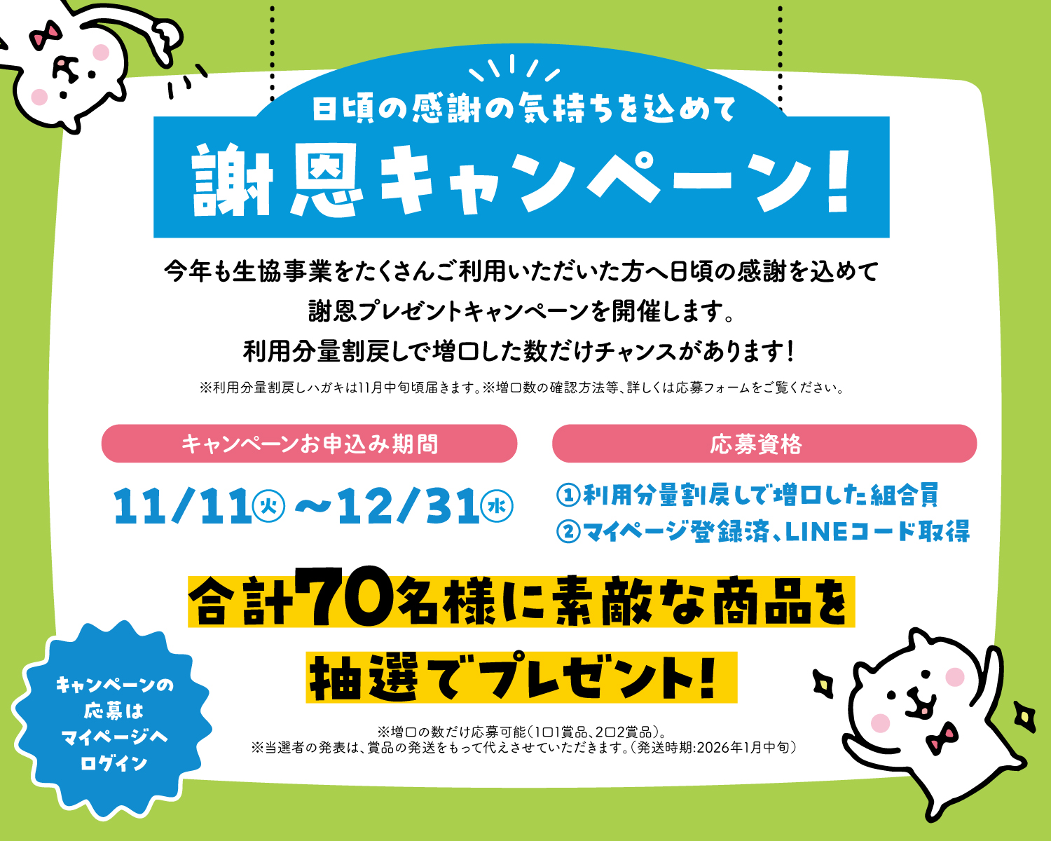 - 2025/11/13 第36期利用分量割戻しに伴う出資金の一部払戻し手続きについて